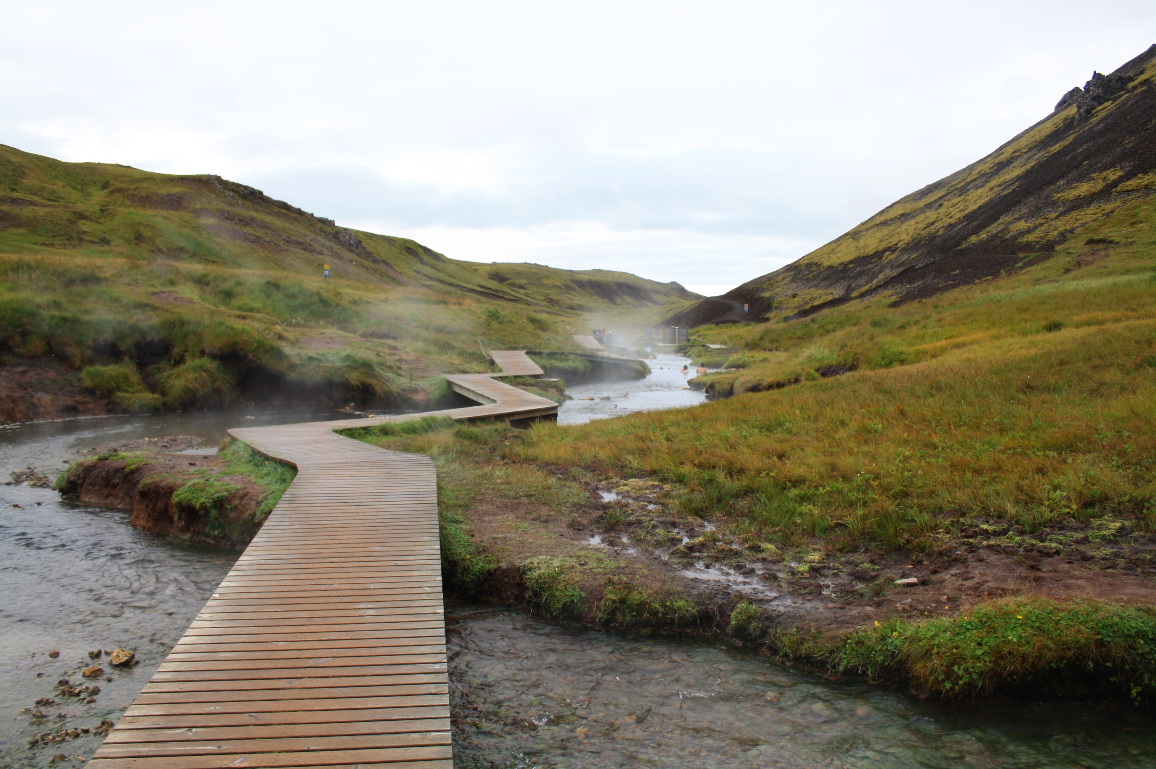 On the opposite extreme entirely to these relatively orchestrated geothermal experiences was the largely untouched and totally at-one-with-natured Reykjadalur Hot Spring Thermal River. Being in the vicinity of the Golden Circle we were aware (as ever) of the potential for what was intended to be a morning of serene seclusion to be overrun by another heard of selfie-stick-sporting sightseers. So we set our alarm for 5 am sharp and made sure we got there before anyone else. An hour-or-so hike took us to the crystal clear waters; this hour-or-so spent playing overtaker and overtakee of a group of three fellow early birds with whom we were quite shamelessly racing to beat to the stream. Thanks to a number of outer clothing readjustments (on my part) and a number of unmissable photo opportunities (on their part) it was touch and go for most of the hike. But down to sheer determination (on our part) we beat them to it, disrobing quicker than we thought possible (if it hadn’t have been for the adrenaline I’m not sure we would have got down to our swimwear in the ice-cold air) to position ourselves safely in the stream for their delayed arrival. Oh we enjoyed the supremacy.