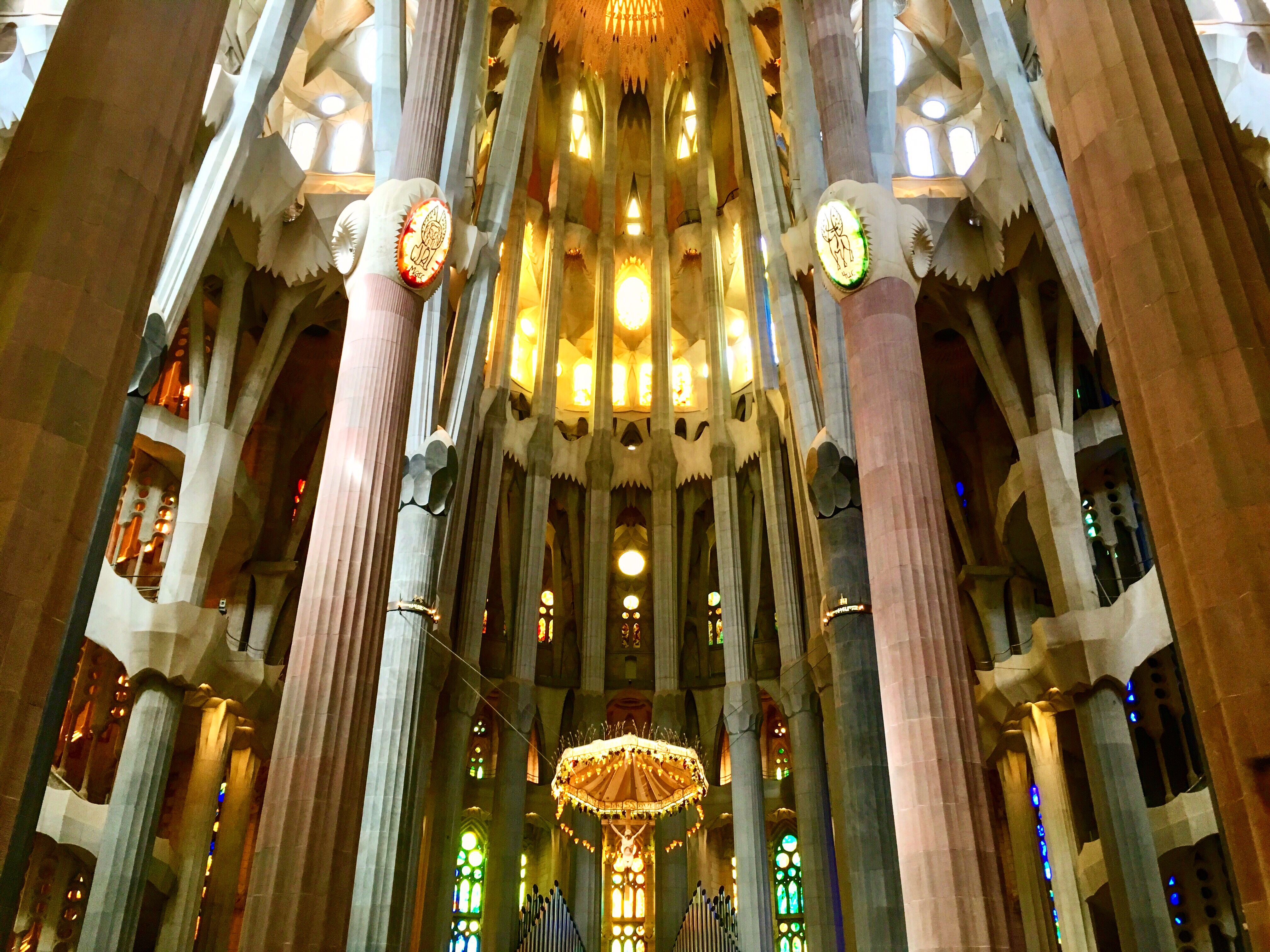 Along with the consumption of the entirety of Catalonia’s tapas supplies we did some sightseeing activities (bloody good sightseeing activities come to that). First up was La Sagrada Familia. (Which we did not dance around (like Ed) (sorry to disappoint).) With pre-booked tickets (I’m now somewhat of a professional when it comes to religious building queuing time reduction) we swanned past the ill-prepared swarms, gawking unapologetically at the magnificent (yet TOTALLY FUCKING RUINED BY CONTINUAL BLOODY CONSTRUCTION) exterior with its fairytale-esque bone-like structure adorned with bright, glistening pieces of fruit (not real (they would be awfully off by now)), almost enticing you in to see what treasures are to be found inside. After the obligatory (and extremely unflattering) Sagrada Selfie (imagine the camera angle required to include all of the ruddy spires) we crossed the threshold and were instantly transported into another world. The basilica is vast, the ceilings are tall and the decoration is exquisite. (I am aware that this description is fitting to every basilica that has ever been built.) But this one was different. It felt modern even though its construction started 135 years ago. The stained glass windows were totally unique, like nothing I have seen before (and (not to brag, but) I’ve seen quite a few stained glass windows in my time) and the illumination they created as the sun shone through was something quite spectacular, which, I have no doubt, would have been in Gaudí’s creative vision. We were so in awe we even watched the infomercial that was playing on repeat in one corner of the church. It was actually very informative! Did you know for example (in the voice of Jimmy Carr), that Gaudí was actually killed by being run over by a tram?! And not only that, no taxi driver would pick up the injured man and take him to a hospital because they thought he was a beggar, unaware of his real identity?! (I am not condoning tram hit-and-run cases on beggars.) But can you bloody believe it! Imagine! (Having now lost one potential question for my Christmas quiz I won’t reveal any more juicy facts for fear of ruining the festivities altogether.) But just trust me on this one: go (with a pre-booked ticket) and you won’t be disappointed. (Although the infomercial may be more mercial than info following that super saucy (and obviously super tragic) leak.)