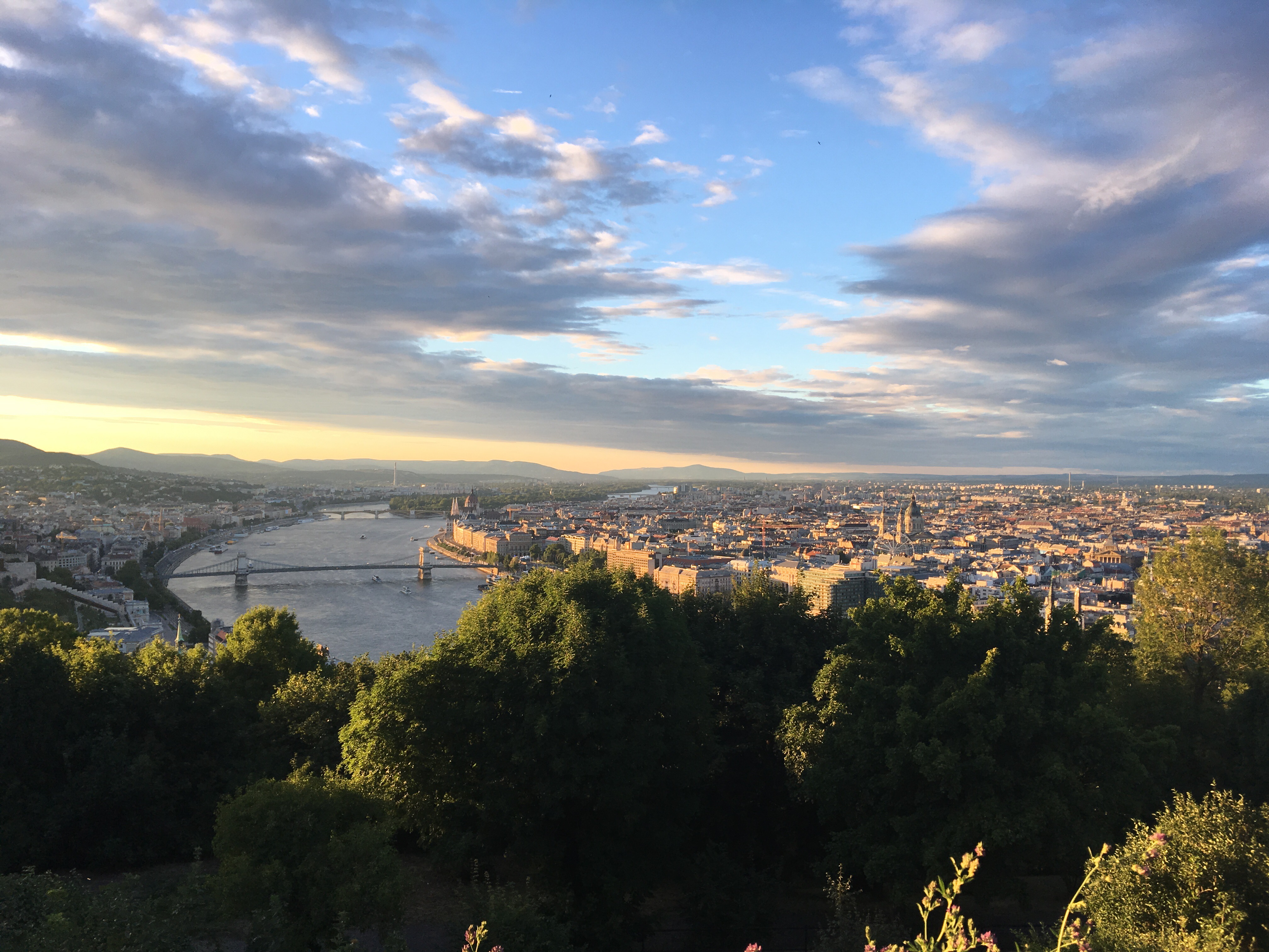 It was soon the evening and time for a picnic watching the sunset with a group from the hostel. Stocking up on houmous (never too much houmous), bread, cheese, etc., we headed out to find a good spot to enjoy the scenery. And where better to take in the city and the Danube descend into darkness than from the ruddy great Gellért Hill. (My thighs got it good that day.) The view itself is pretty incredible, and watching it transform before your eyes from blue to orange to pink to black (while eating tons of houmous, bread and cheese) was preeetty spectacular.